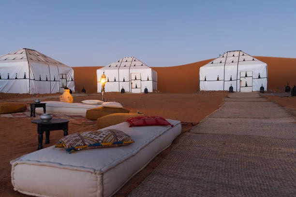 We offer a range of accommodations tailored to suit different preferences and budgets. You can stay in charming boutique hotels that showcase Moroccan architecture and hospitality, traditional riads where you can experience local culture up close, or enjoy a unique desert camping experience under the starlit skies of the Sahara.